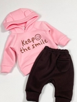 Теплий дитячий костюм “Зберігай посмішку” — це ніжність, комфорт і стиль в одному образі.Комплект складається з м’якого худі з написом “Зберігай посмішку” та теплих штанів. Виготовлений із якісної тринитки на флісі — м’якої, приємної до тіла тканини, що чудово зберігає тепло та не викликає подразнень.